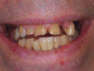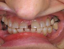 was restored with a combination of crowns, bonding, partial denture and bleaching.