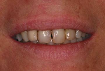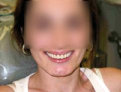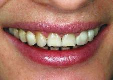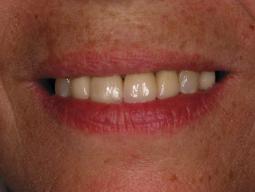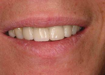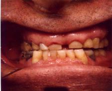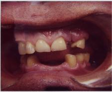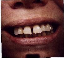 follow the shape of the lower lip. This patient's four front teeth were broken and decayed.