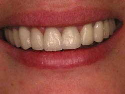 laminates replaced her old bridges. All 14 of her top teeth were restored resulting in a wonderful